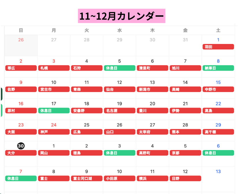 1112月カレンダー